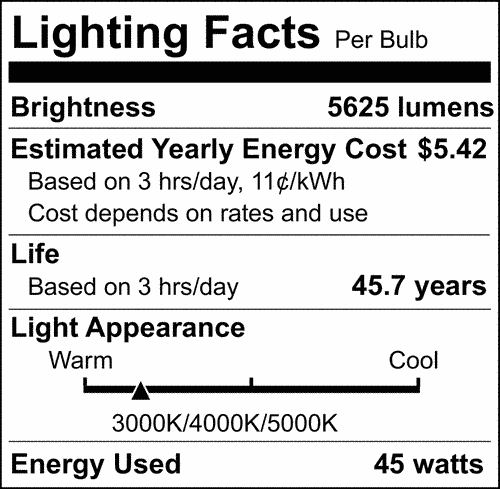 | Lumen Output | 5625L-9450L |